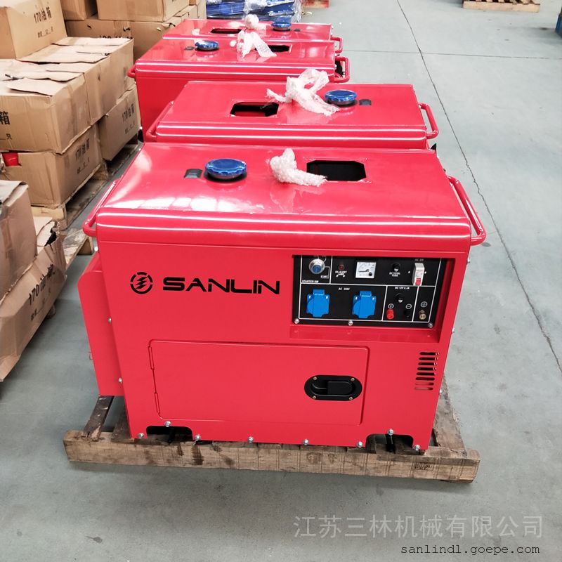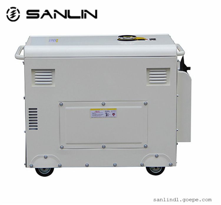 5KW silent generator small mobile diesel generator5KW silent diesel generator product model SHL6800CTS frequency Hz 50 60 Rated power KW 5.5 6.3 Peak output power KW 6.0 7.0 Rated voltage V 230/400 240/416 Rated current A 7.9 8.7 Rated speed rpm 3000 3600 phase single/three phase power factor 0.8 insulation grade B series 2 exciting mode Automatic excitation constant voltage (AVR) form of a panel Common panel output voltage V 230/400 240/416 socket two sockets terminal not have DC 12V DC output terminal output Noise Level (7m) Db(A) 68 starting mode electric start engine model H-186F type Single cylinder, vertical, four-stroke, direct injection Number of cylinders-bore * stroke mm 1-86*72 Volume ml 418 compression ratio 19:01 Fuel volume L 16 fuel type 0 #(summer),-10 #(winter),-20 #(severe cold) Fuel consumption g/kW.h 275.1 Oil volume L 1.65 Oil type CD Class or SAE10W-30, 15W-40 structural style mute Appearance size: L*W*H mm 912*532*740 Net Weight KG 158 Gross Weight KG 174 Continuous working hours (H) 12 cooling method forced air cooling - Name(chinese)